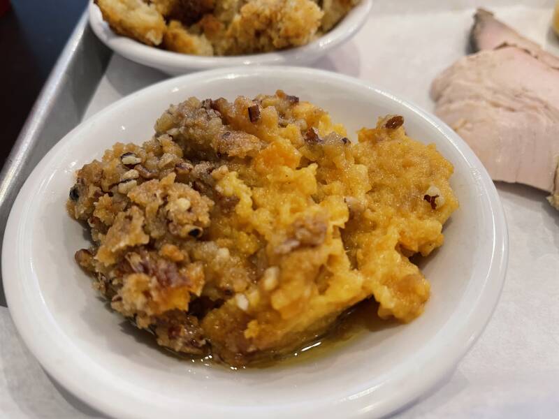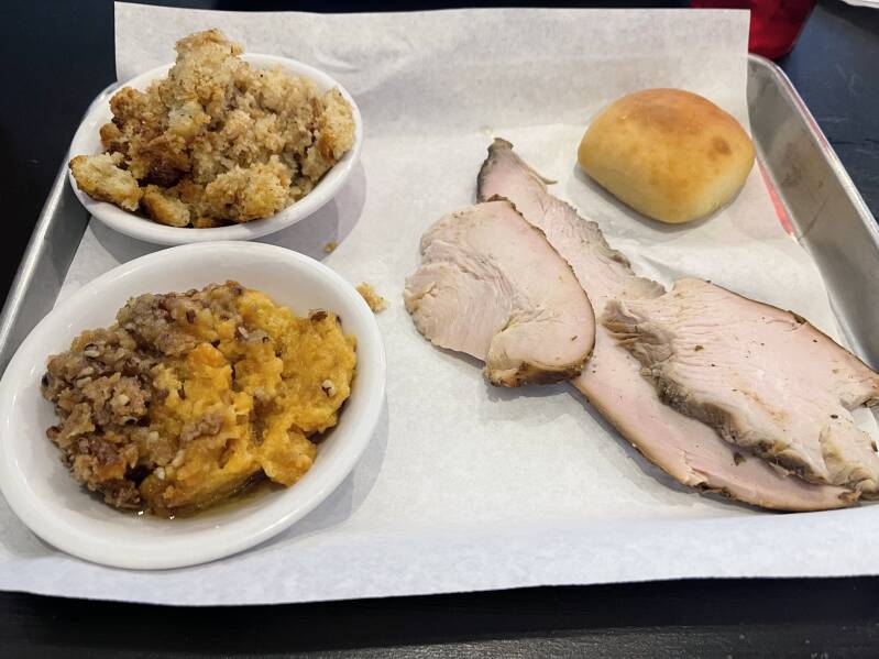For Easter Sunday, my husband and I went to a "new to us" restaurant in Spring Hill, Tennessee. Pig N Pit (http://www.pignpit.com/restaurant-menu.html) has been around for awhile, but we haven't had the opportunity to try it out. I noticed on their Facebook page that they would be doing a special menu for Easter, so we thought this would be the perfect time. When we arrived, we were the first ones there. The server was very friendly and gave a thorough explanation of the options and pricing. I chose smoked turkey breast, cornbread dressing, and sweet potato casserole. The smell of smoked meat wafting through the dining room was intoxicating. Our food arrived to our table quickly and was absolutely delicious. The smoked flavor of the turkey combined with the sweetness of the cornbread dressing made for a perfect bite. The sweet potato casserole had a soufflé like consistency with crunchy pecans on top and I finished off the meal with a buttery, soft roll. My husband had a similar plate but chose brown sugar ham instead of turkey, which he said was equally fabulous. We are already planning a return visit to try their pork barbecue. Try it for yourselves! You won't be disappointed.